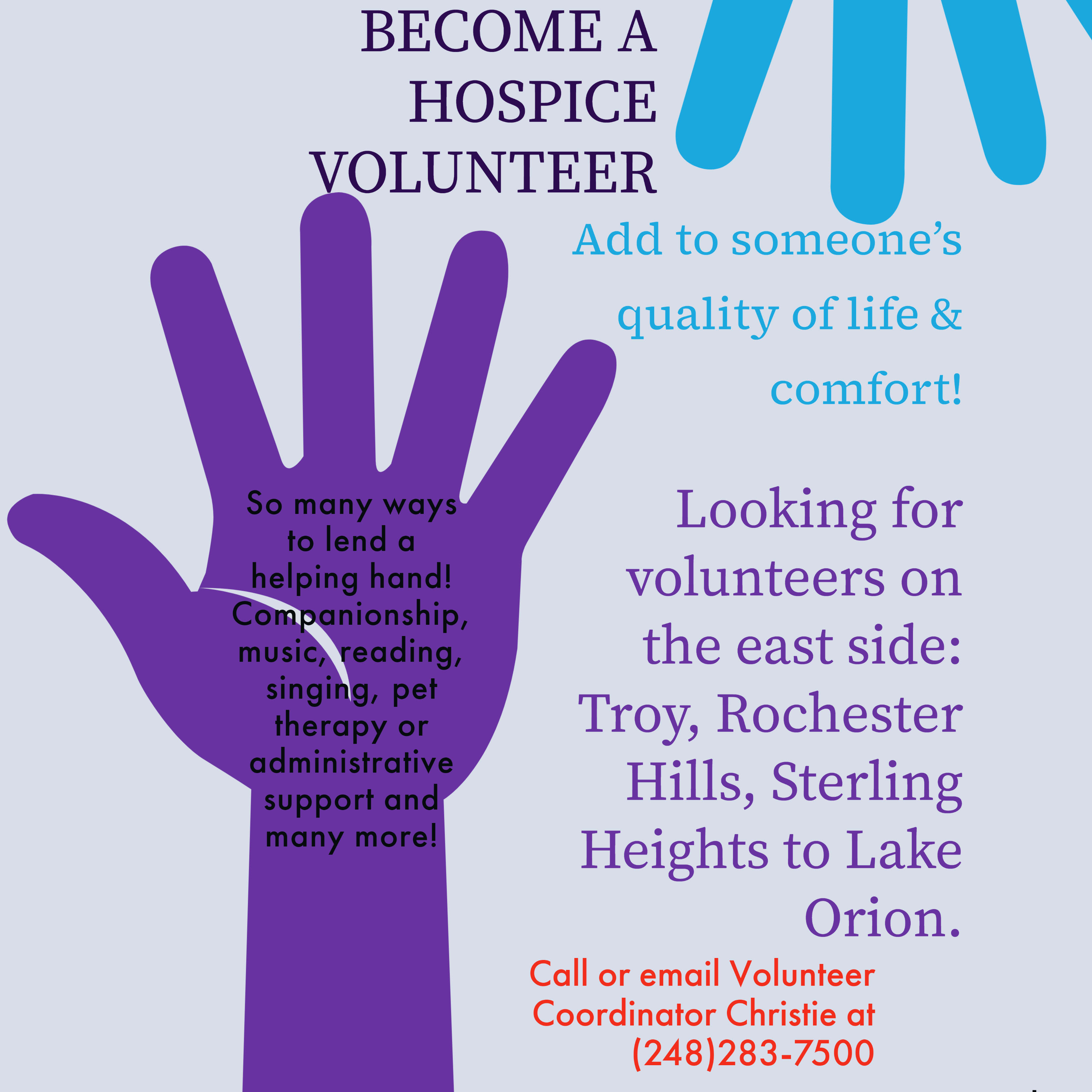 Trained hospice volunteers provide companionship to patients and respite to family members and caregivers. Visit Website Volunteer Page Our mission We provide excellent clinical care and spiritual support to relieve your physical pain and help you to find peace at the end of life. Please fill out the forms below as accurately as.